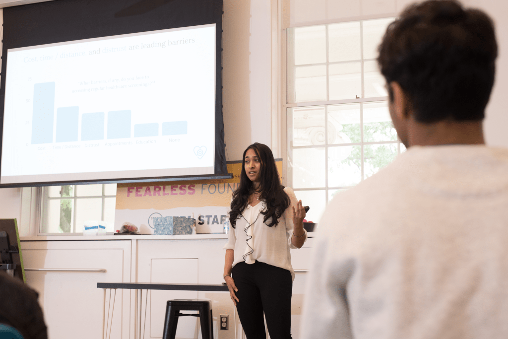 Akshaya practicing her pitch with the Terp Startup Accelerator cohort